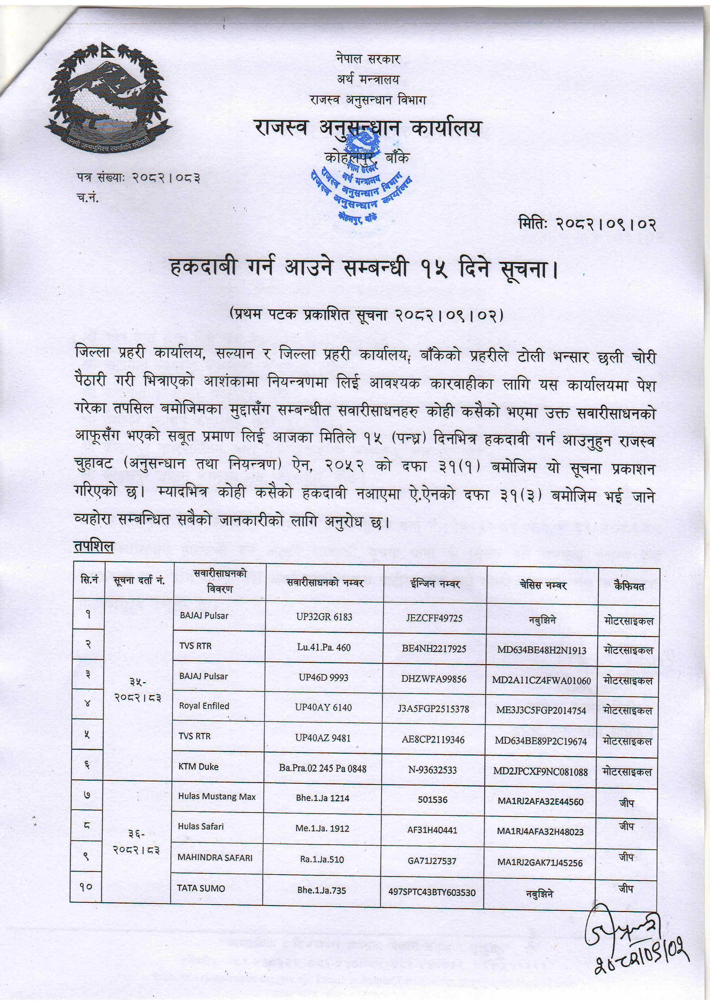 हकदावी सम्बन्धी सूचना